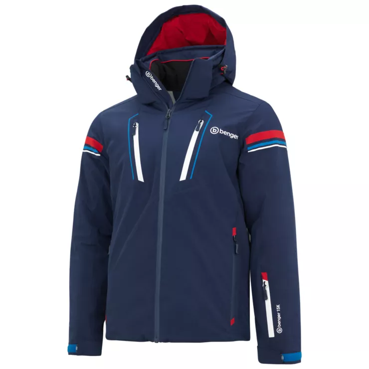 abnehmbare und verstellbare Kapuze, Frontreißverschluss mit Kinnschutz, verstellbare Ärmelabschlüsse, elastische Innenbündchen, RV-Seitentaschen, Brusttaschen mit Reißverschluss, Skipasstasche, verschließbare Innentasche, Schneefang