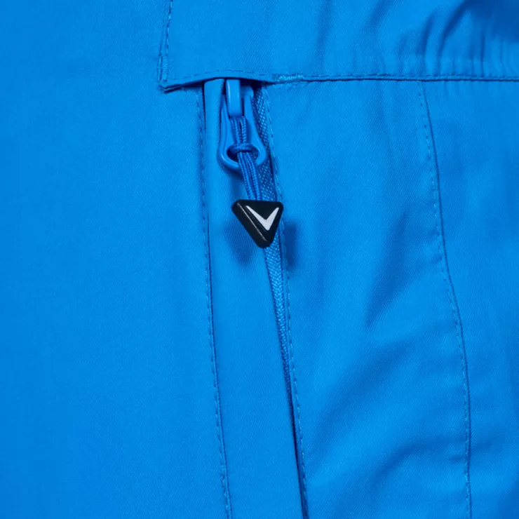 abnehmbare Hosenträger, Klettverschlussriegel zur Weitenregulierung, Reißverschlusstaschen, Beinabschlüsse mit Kantenschutz und Schneefang, vorgeformte Knie, versiegelte Nähte