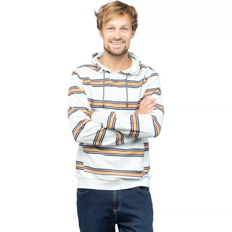 Ein feiner Hoody, simpler Style mit Streifen, lockerer Kapuze und Kängurutasche als Allrounder für den Alltag. Der Interlaken Hoody trocknet schneller und lässt damit auch einen überraschenden Regenguss flotter vorübergehen.