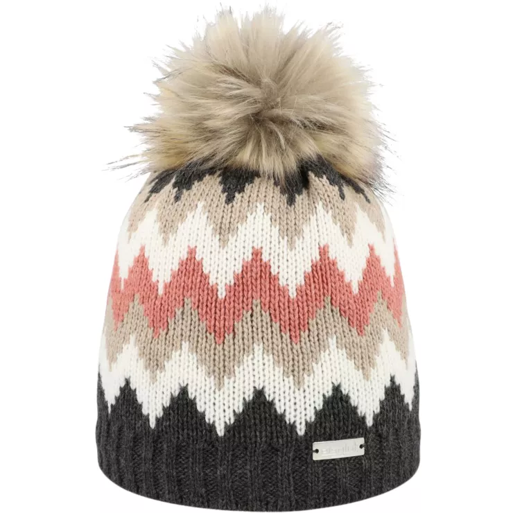 Hochwertige und warme Damen Grobstrickmütze mit weichem Fleece Innenband und kuscheligem Kunstfellbommel.