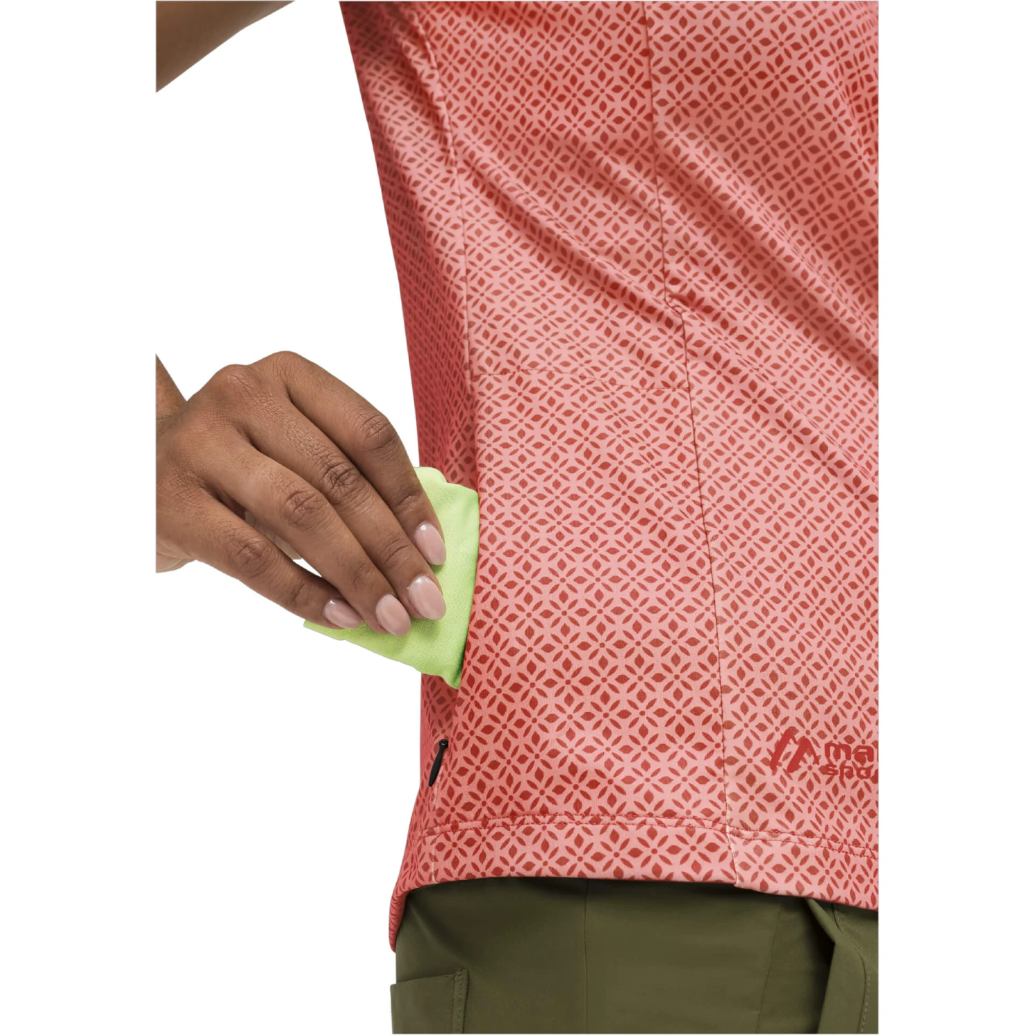 Eine kleine Tasche mit nahtfeinem Reißverschluss bietet dir Platz für Kleinigkeiten.