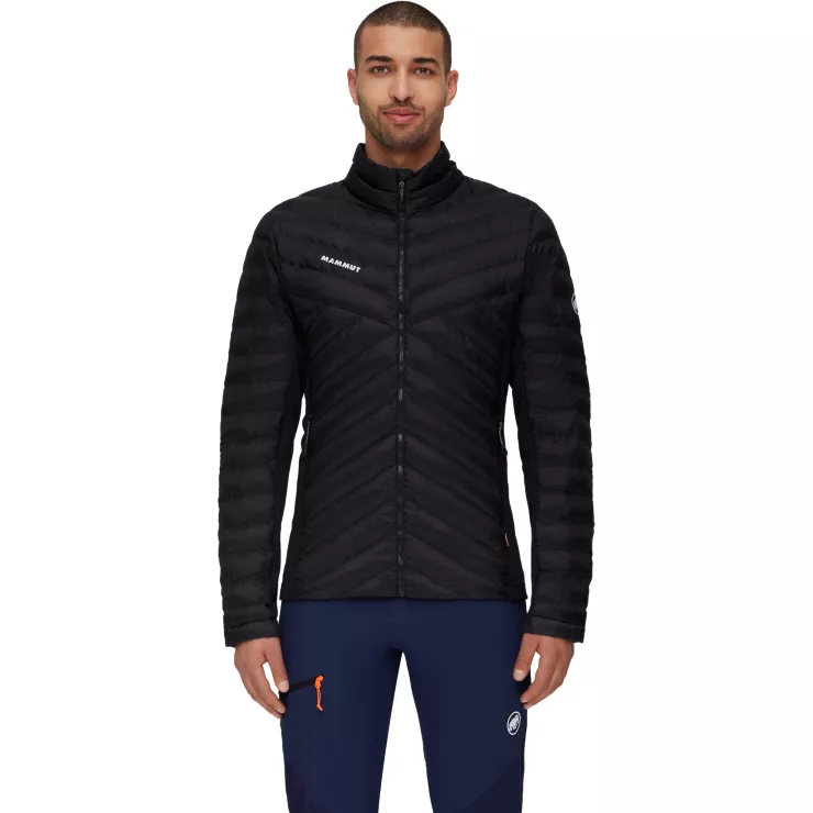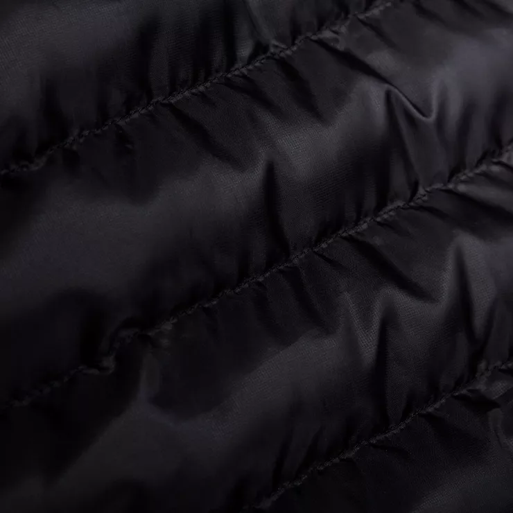 Aussenstoff aus 100% Recyclingpolyester, Hybridkonstruktion mit Stretch-Einsätzen, gefüllt mit recycelten synthetischen Ecodown® Fasern für ein sehr gutes Wärme-Gewichts-Verhältnis, PFC-freie DWR-Imprägnierung, bluesign® zertifiziert, Fair Wear