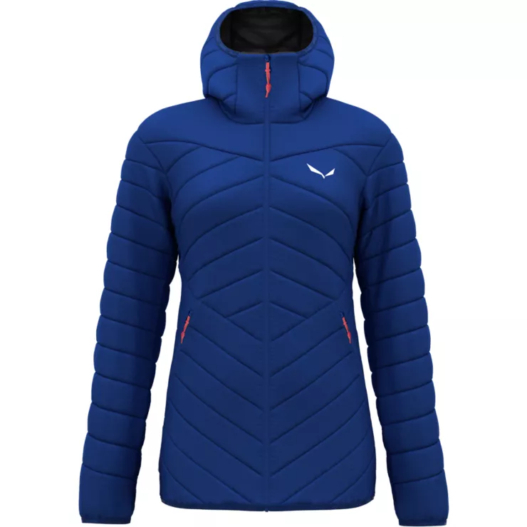 Eine warme, leichte Daunenjacke für Damen zum alpinen Bergsteigen und Skitourengehen.