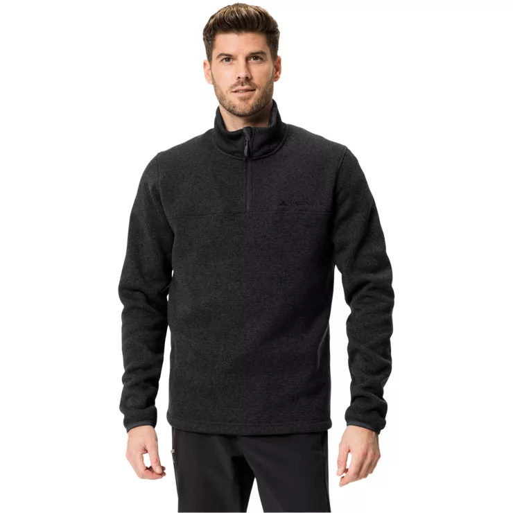 Dieser klassische Herren Fleecepullover in Strickoptik ist besonders vielseitig. Das umweltfreundliche Fleece-Material, das zu 100 % aus recycelten PET-Flaschen hergestellt wurde, hält auch bei schweißtreibenden Aktivitäten warm und trocken.